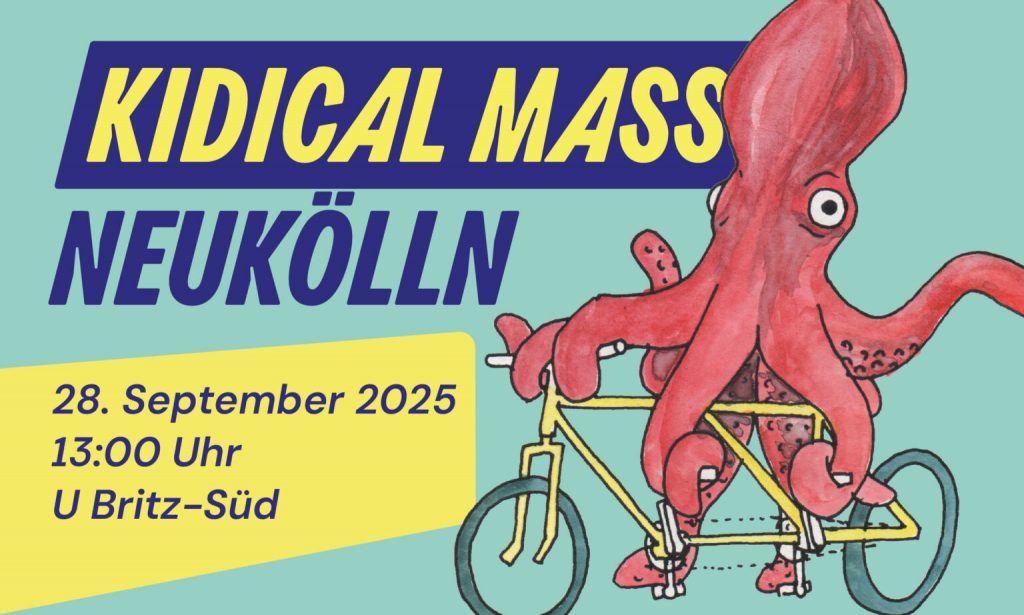 - Kidical Mass NeuköllnAm 28. September 2025 erobern die Kinder wieder die Straßen Neuköllns – bei der Kidical Mass! Wir laden alle kleinen und großen Radler:innen … Weiterlesen