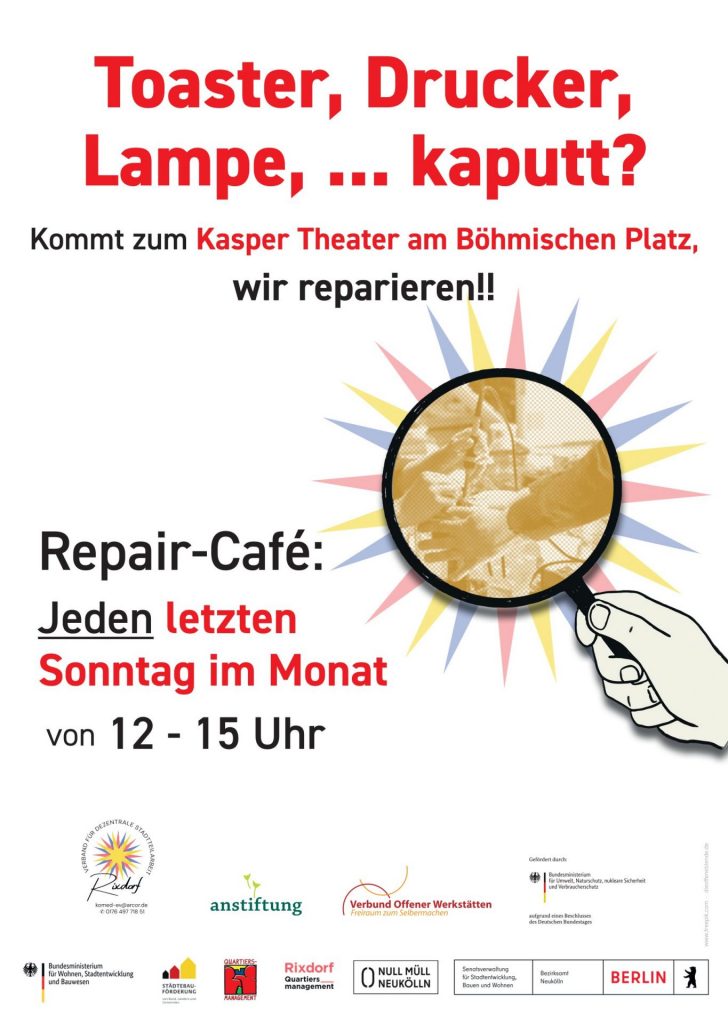Der Globus hat einen Wackelkontakt? Der Drucker macht nicht was er soll? Die Fernbedienung funktionier nicht mehr? Kein Problem! Im Rixdorfer Repair-Café könnt Ihr kaputte Gegenstände jeglicher Art wieder flott machen. Am Sonntag 25.01.2026 und jeden letzten Sonntag im Monat von 12 bis 15 Uhr öffnet das Repair-Café am Böhmischen Platz wieder seine Türen. Bei Kaffee und Kuchen könnt Ihr gemeinsam versuchen, defekte Geräte zu reparieren.